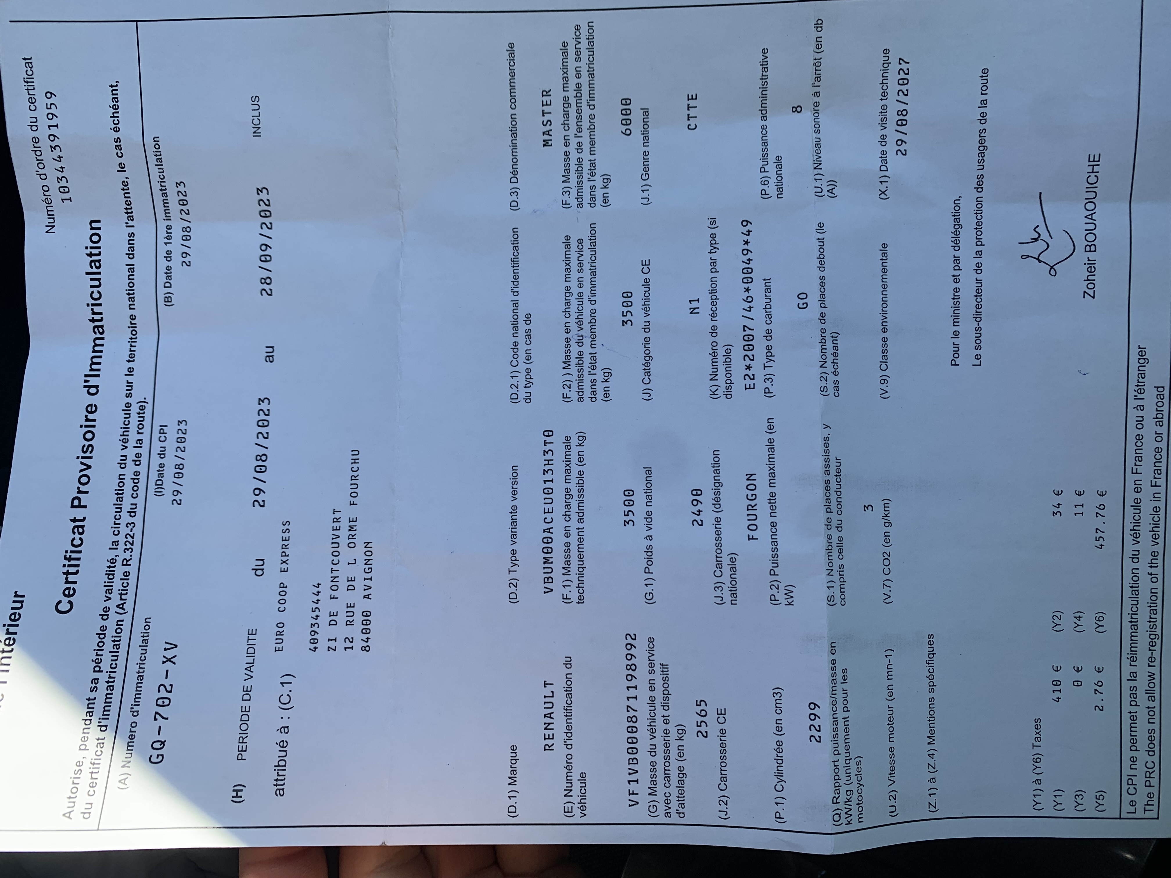 Véhicule [GQ-702-XV] RENAULT MASTER20 affecté à AMINE AMINE